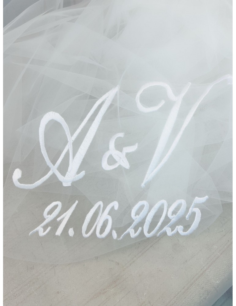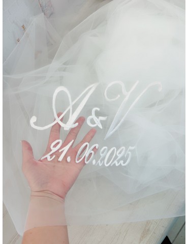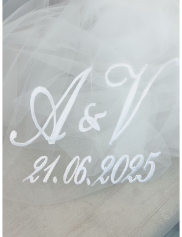 Transformă-ți voalul de mireasă într-o amintire de suflet cu ajutorul broderiei personalizate! Atelierul nostru oferă un serviciu inedit de brodare manuală, prin care putem adăuga pe voalul tău orice mesaj, inițială, monogramă sau imagine simbolică, adaptate stilului tău. Dimensiunea maximă a broderiei este de 30x20 cm, potrivită pentru a evidenția elegant mesajul ales. Voalul poate fi trimis către noi prin curier sau adus personal, în funcție de preferințe. Fie că alegi să scrii „Always & Forever”, o dată specială sau un simbol cu semnificație personală, broderia va adăuga emoție și rafinament ținutei tale de nuntă. Un detaliu discret, dar cu impact puternic – pentru o mireasă care vrea să spună povestea sa, în felul ei.