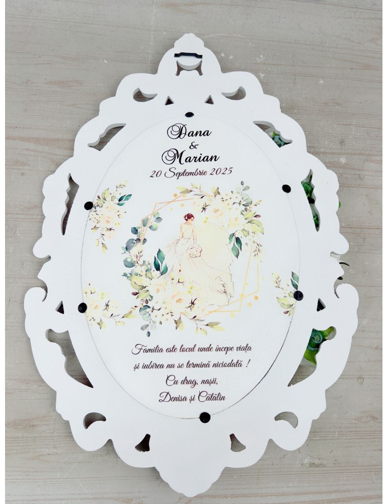Oglinda miresei din lemn personalizata cu nuante alb si verde