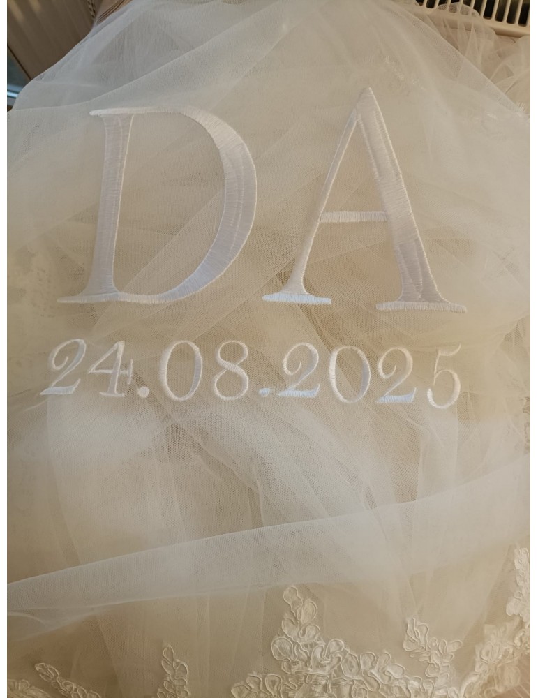 Transformă-ți voalul de mireasă într-o amintire de suflet cu ajutorul broderiei personalizate! Atelierul nostru oferă un serviciu inedit de brodare manuală, prin care putem adăuga pe voalul tău orice mesaj, inițială, monogramă sau imagine simbolică, adaptate stilului tău. Dimensiunea maximă a broderiei este de 30x20 cm, potrivită pentru a evidenția elegant mesajul ales. Voalul poate fi trimis către noi prin curier sau adus personal, în funcție de preferințe. Fie că alegi să scrii „Always & Forever”, o dată specială sau un simbol cu semnificație personală, broderia va adăuga emoție și rafinament ținutei tale de nuntă. Un detaliu discret, dar cu impact puternic – pentru o mireasă care vrea să spună povestea sa, în felul ei.