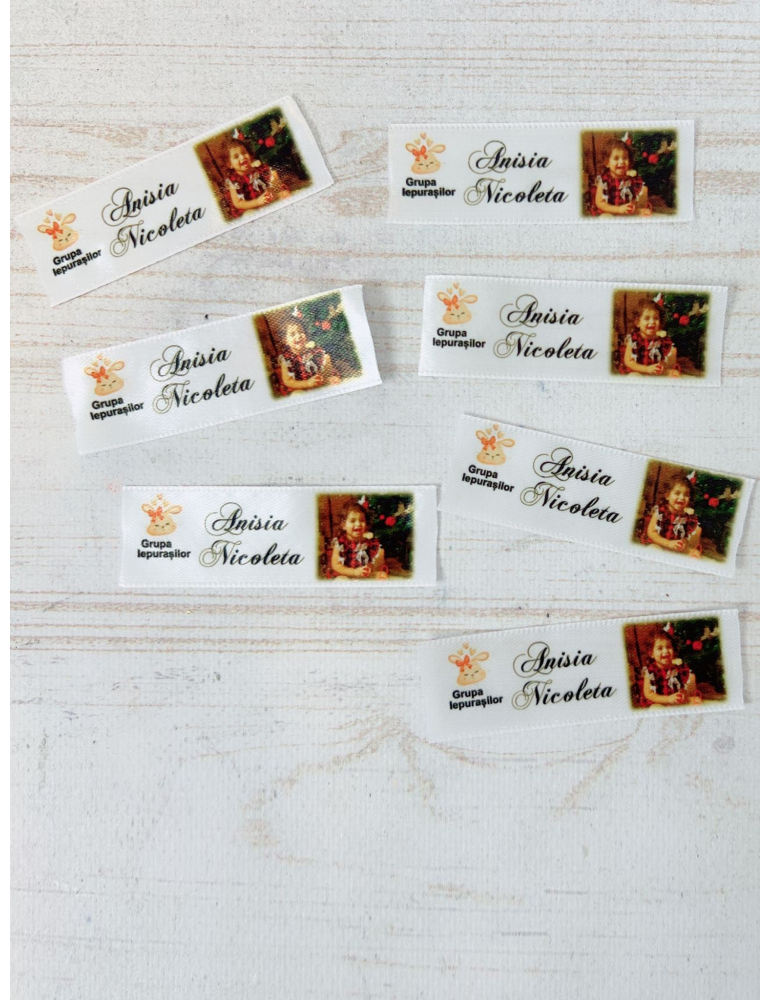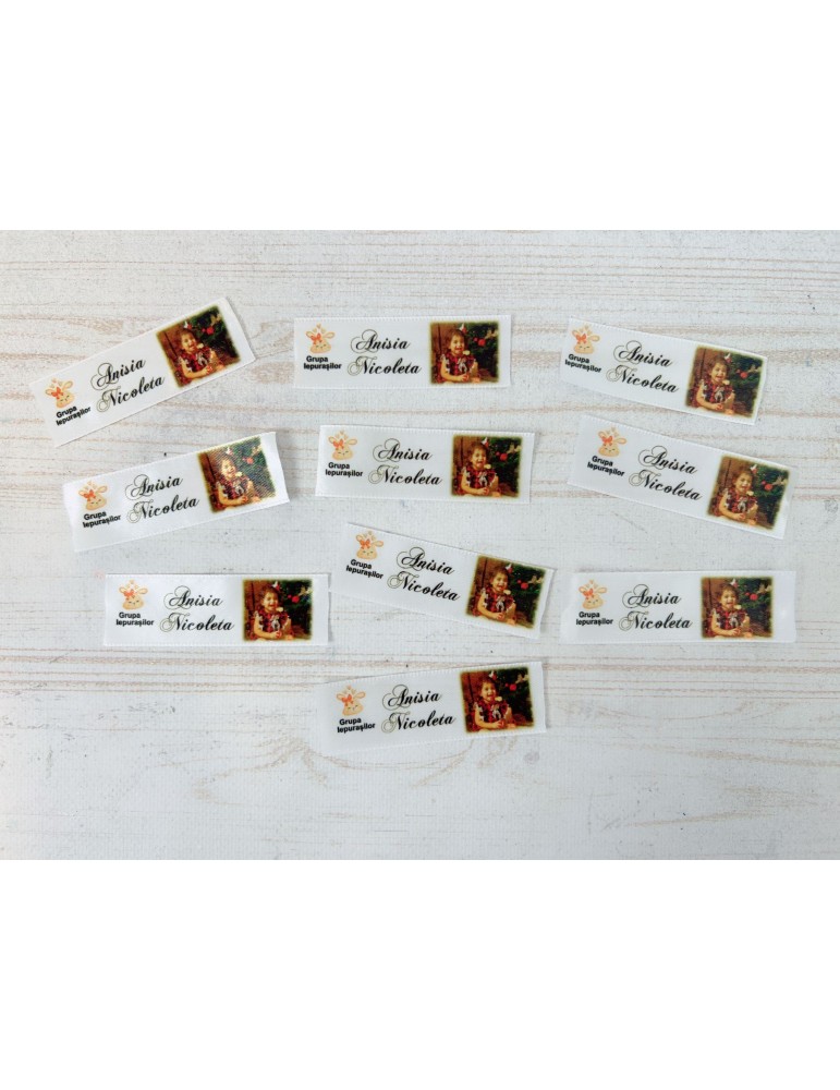 Etichetele personalizate pentru gradinita sunt imprimate pe material textil.