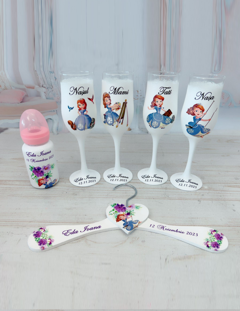 Pretul afisat se refera la un singur biberon si include personalizarea cu numele copilului si data evenimentului