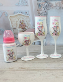 Transformă botezul copilului tău într-un eveniment memorabil cu acest biberon personalizat, lucrat manual în atelierul nostru. Fiecare produs este meticulos vopsită și lăcuită manual, iar imaginea decorativă poate fi personalizată complet cu orice grafică dorită: numele copilului, data evenimentului sau chiar fotografia sa! Imaginea este transferata folosind hârtie de mătase prin tehnica decoupage, pentru un aspect elegant și un finisaj premium.