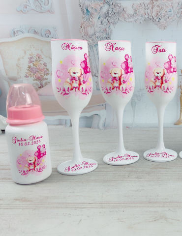 Pretul afisat se refera la un singur biberon si include personalizarea cu numele copilului si data evenimentului