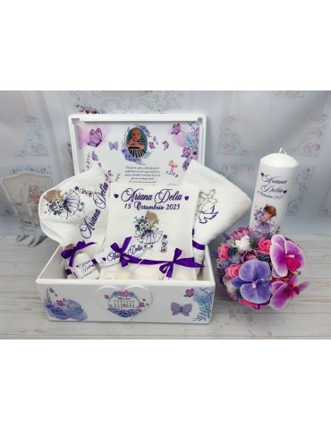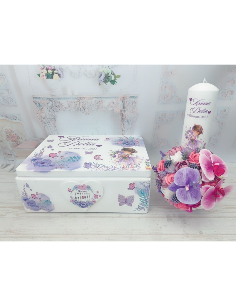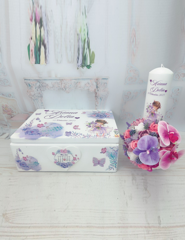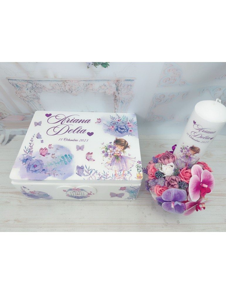 Ce contine setul de botez cu tematica "Fetita cu flori"?