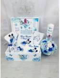 Pretul afisat se refera la setul de botez ce include: cutie amintiri, trusou brodat, lumanare de botez - personalizarea este inclusa in pret - Diametru lumanare botez