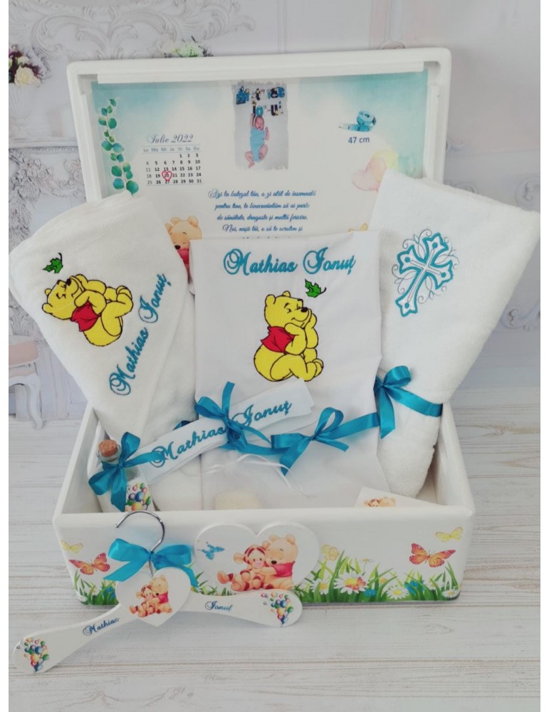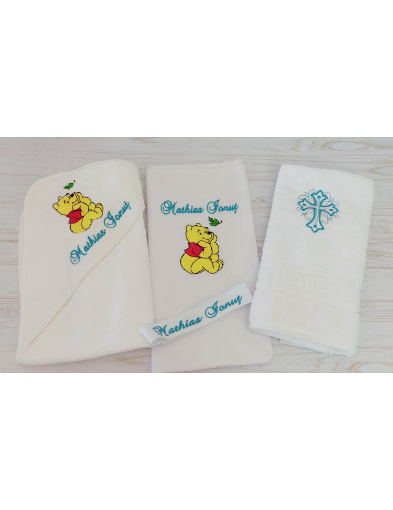 Set de botez personalizat prin broderie cu tematica Winnie