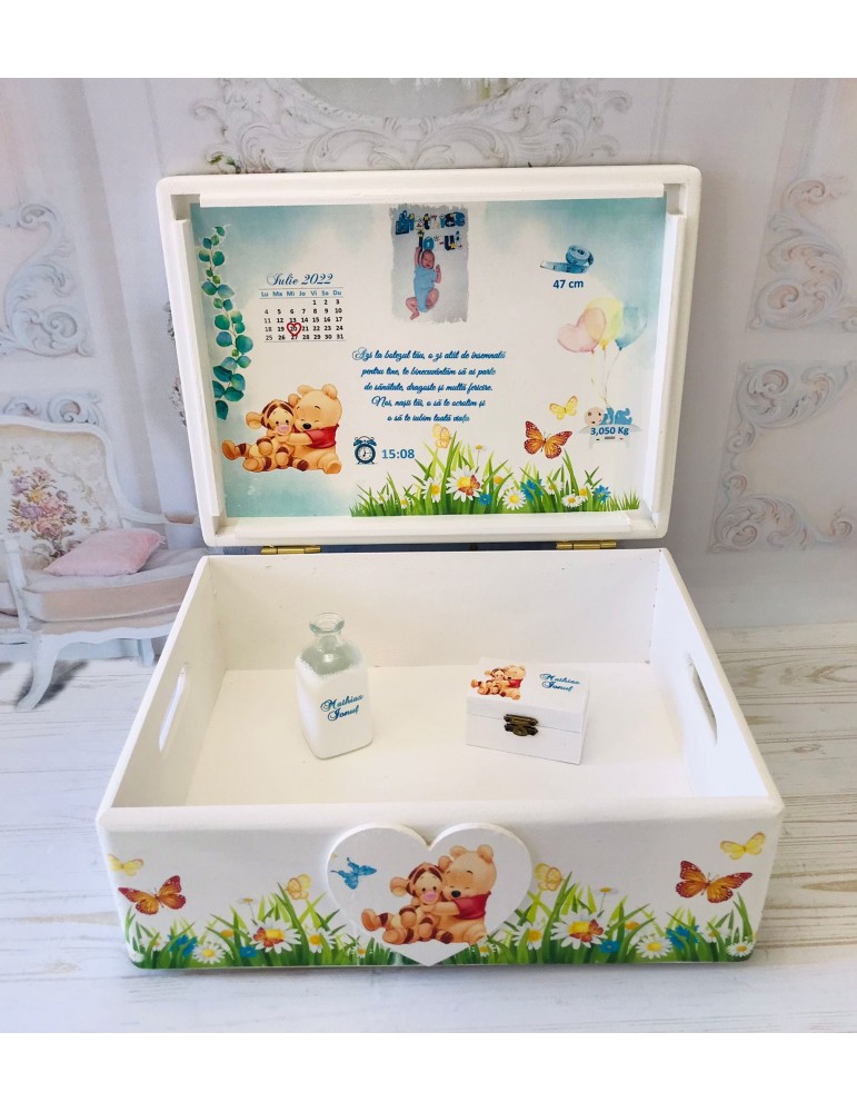 Cutia poate fi utilizată ulterior pentru păstrarea tăviței de moț, a accesoriilor speciale sau a celor mai dragi amintiri din copilărie.