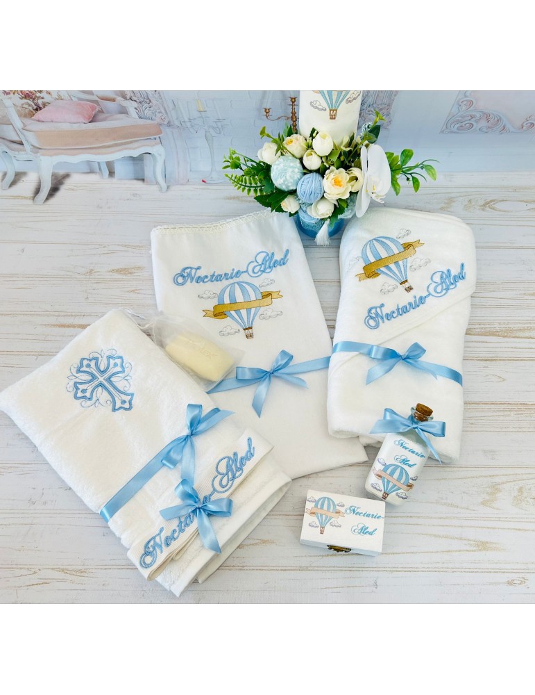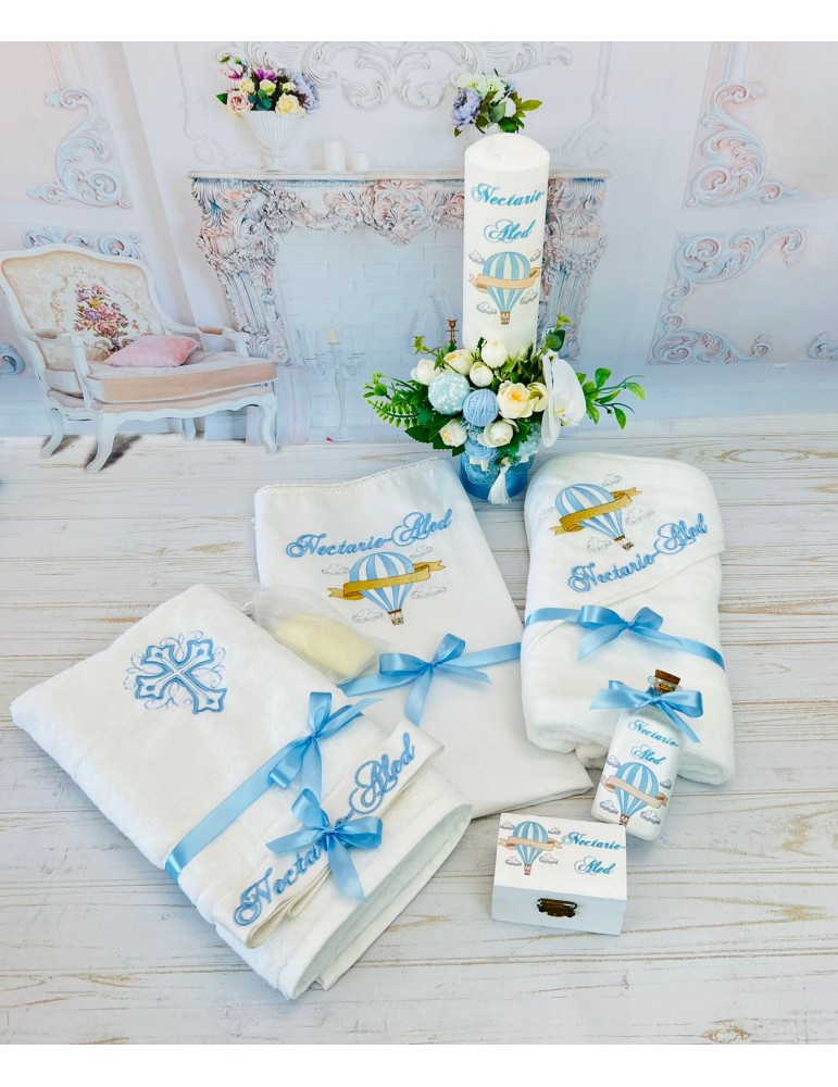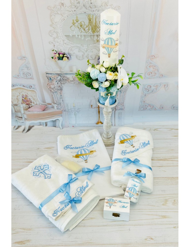 Ce contine setul de botez  cu tematica "Balon cu aer cald"?