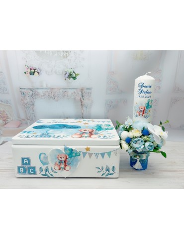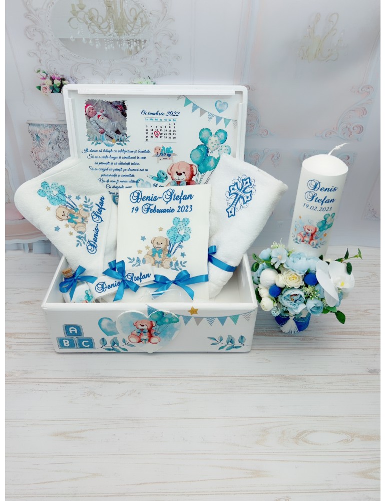 Descoperă seturile de botez personalizate pentru baieti, create pentru a transforma ceremonia de botez într-un moment cu adevărat special. Fiecare element al setului este realizat cu atenție la detalii și personalizat pentru a reflecta tematica dorită, oferindu-ți posibilitatea să păstrezi amintiri prețioase pentru o viață întreagă.