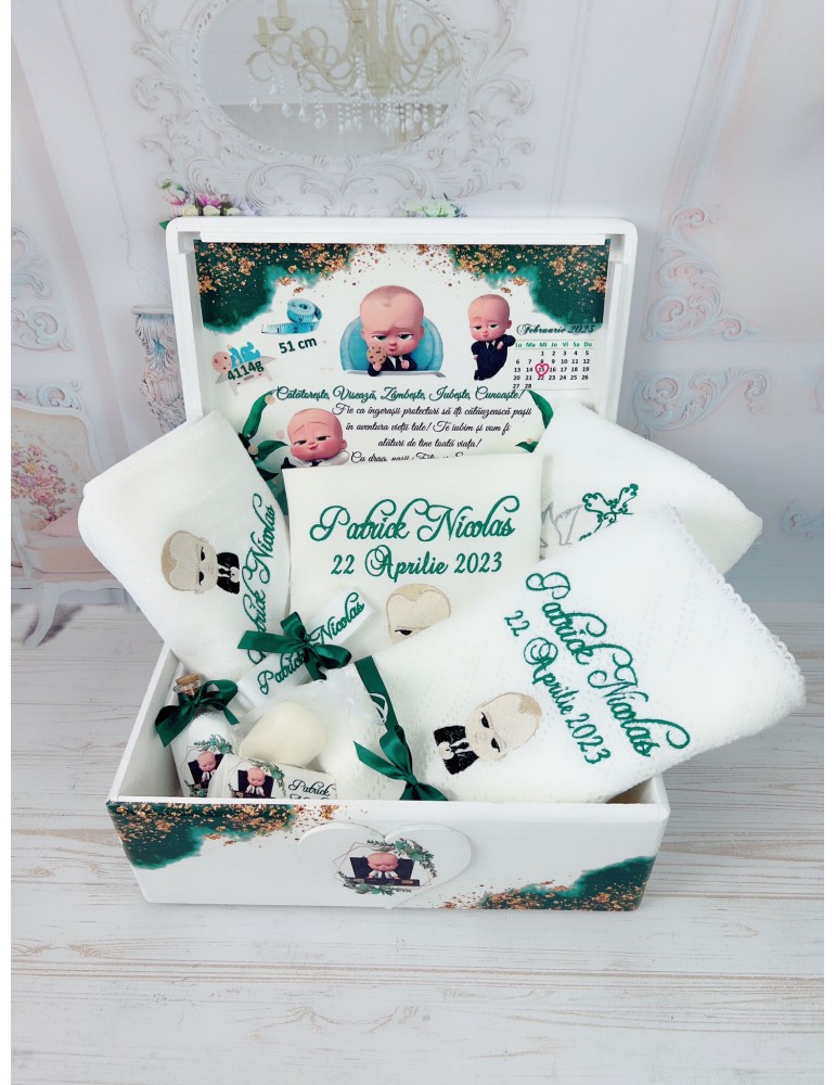 Set de botez personalizat cu tematica baby boss nuante verde
