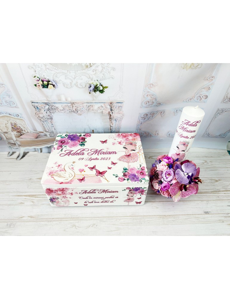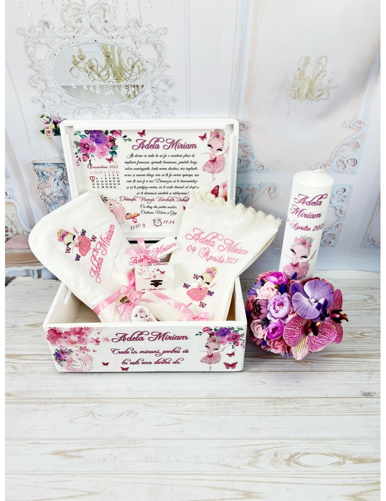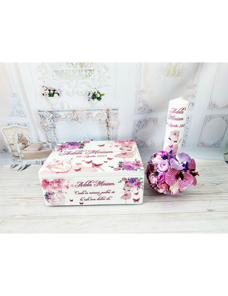 Ce contine setul de botez cu tematica "Balerina - nuante roz si mov"?