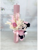 Lumanarea de botez este decorată elegant cu flori uscate, asortată cu grafica cutiei, și poate include: