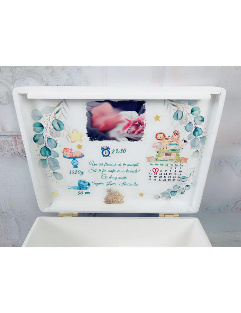 Cutia poate fi utilizată ulterior pentru păstrarea tăviței de moț, a accesoriilor speciale sau a celor mai dragi amintiri din copilărie.