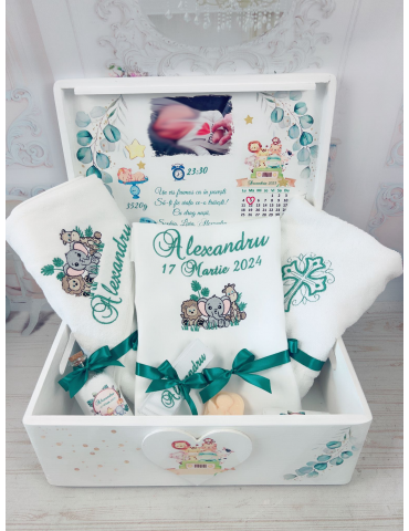 Set botez brodat pentru baiat personalizat Safari