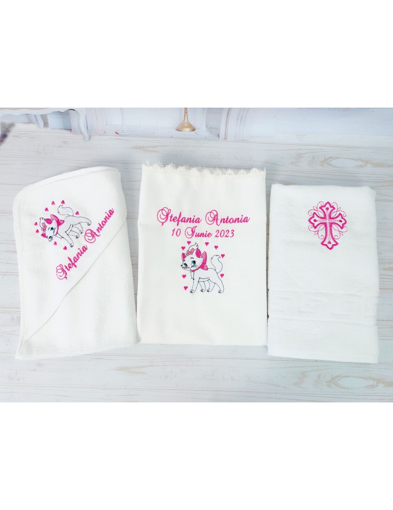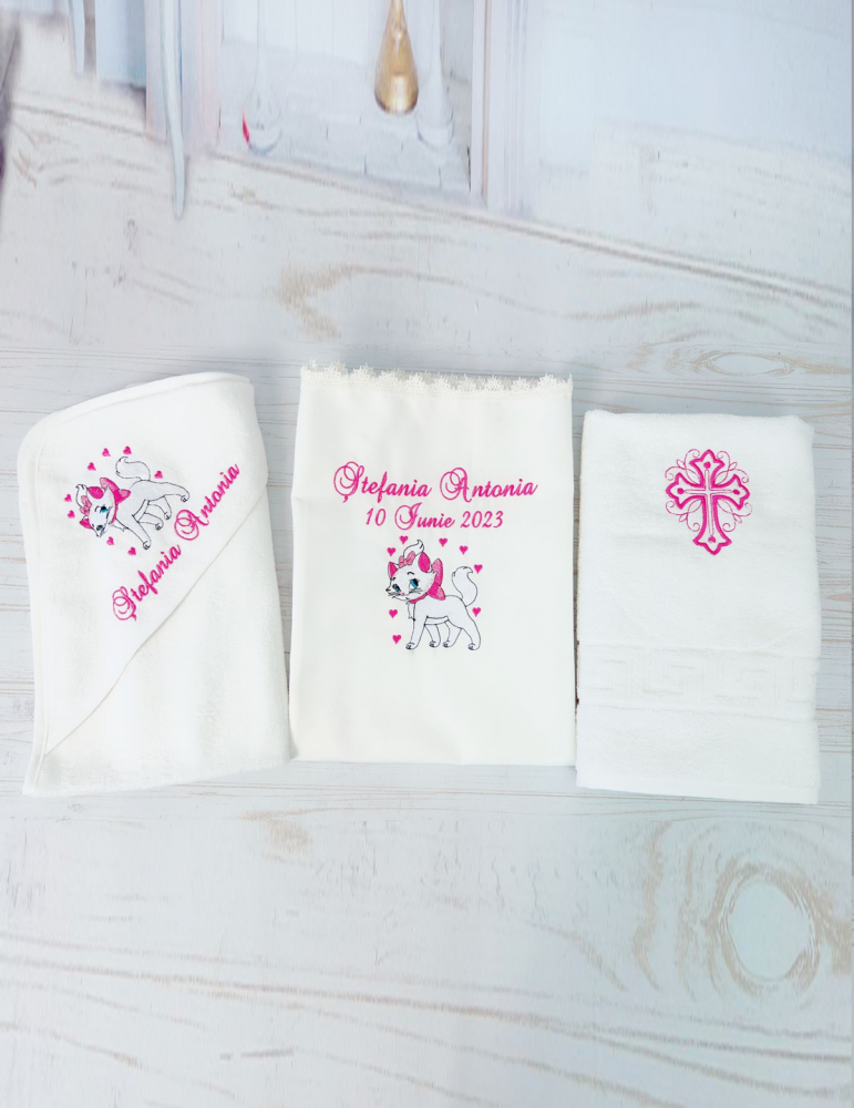 Ce contine trusoul de botez cu tematica "Pisica aristocrata"?