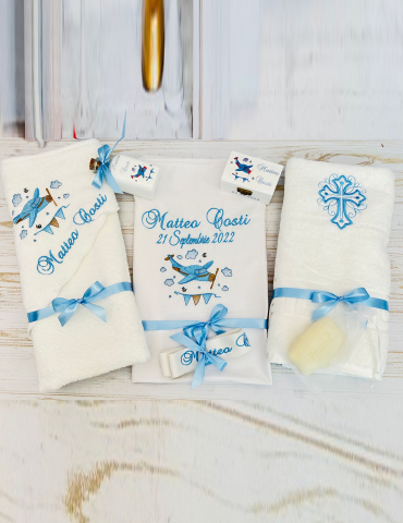Set de botez personalizat prin broderie cu avioane