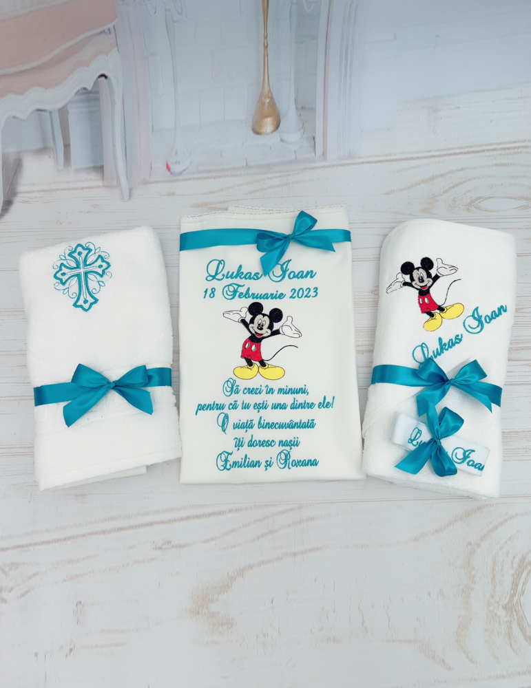Descoperă seturile de botez personalizate pentru baieti, create pentru a transforma ceremonia de botez într-un moment cu adevărat special. Fiecare element al setului este realizat cu atenție la detalii și personalizat pentru a reflecta tematica dorită, oferindu-ți posibilitatea să păstrezi amintiri prețioase pentru o viață întreagă.