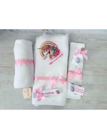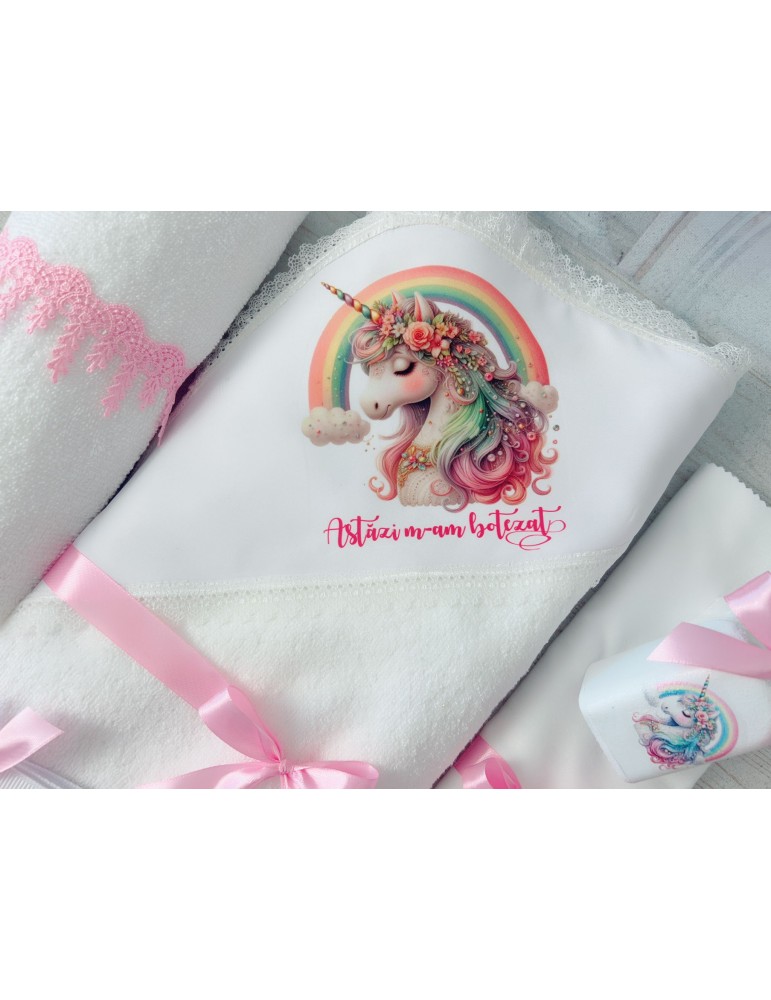 Ce contine setul de botez cu tematica "Unicorn colorat"?