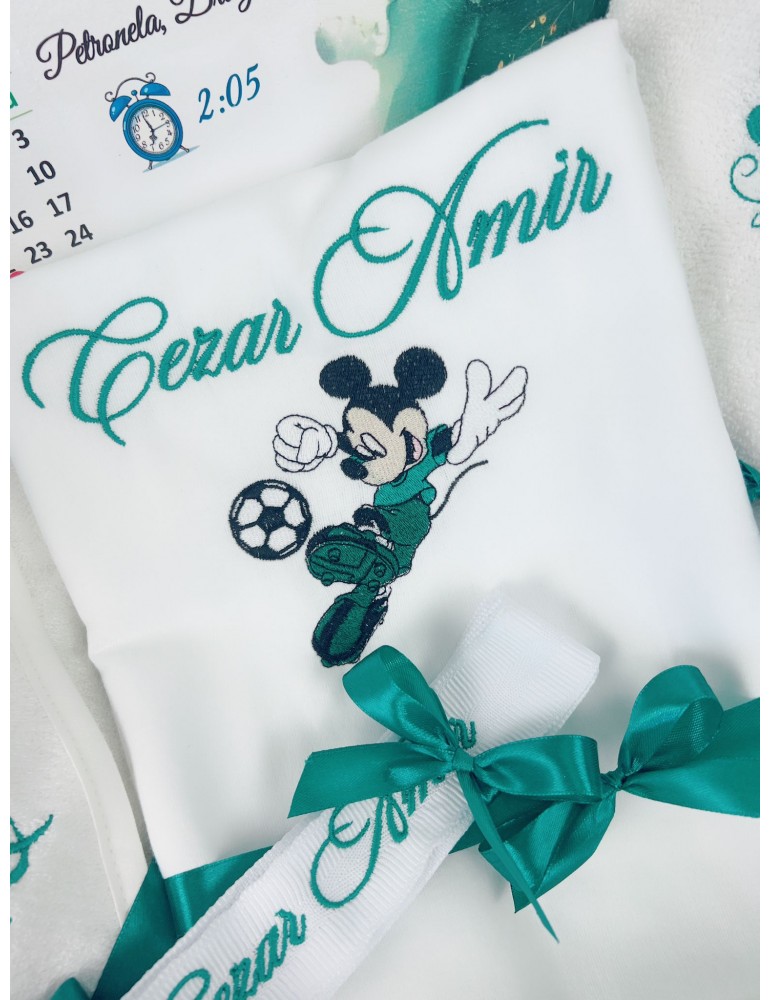 Ce contine setul de botez cu tematica "Mickey - fotbal"?