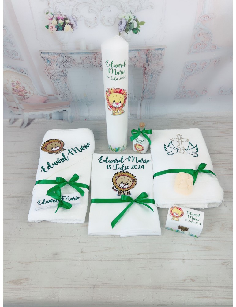 Ce contine setul de botez cu tematica "Regele Junglei - Leul"?