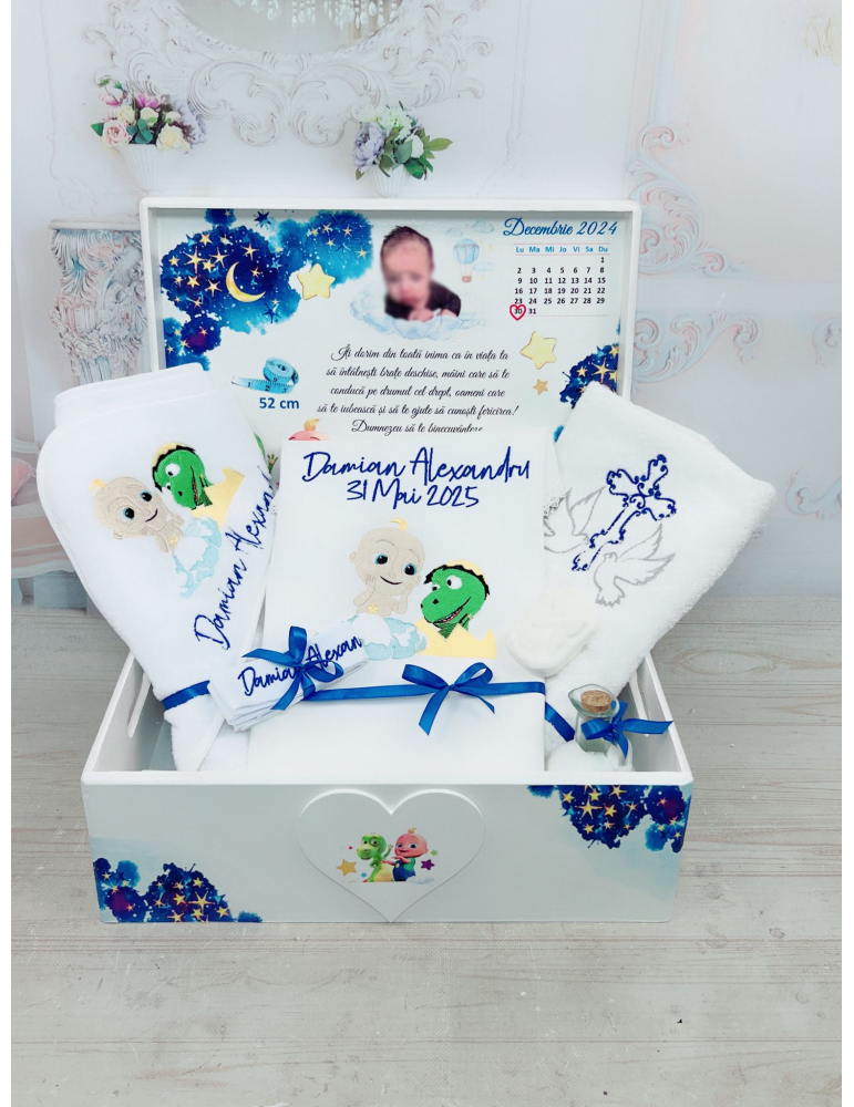 Descoperă seturile de botez personalizate pentru baieti, create pentru a transforma ceremonia de botez într-un moment cu adevărat special. Fiecare element al setului este realizat cu atenție la detalii și personalizat pentru a reflecta tematica dorită, oferindu-ți posibilitatea să păstrezi amintiri prețioase pentru o viață întreagă.