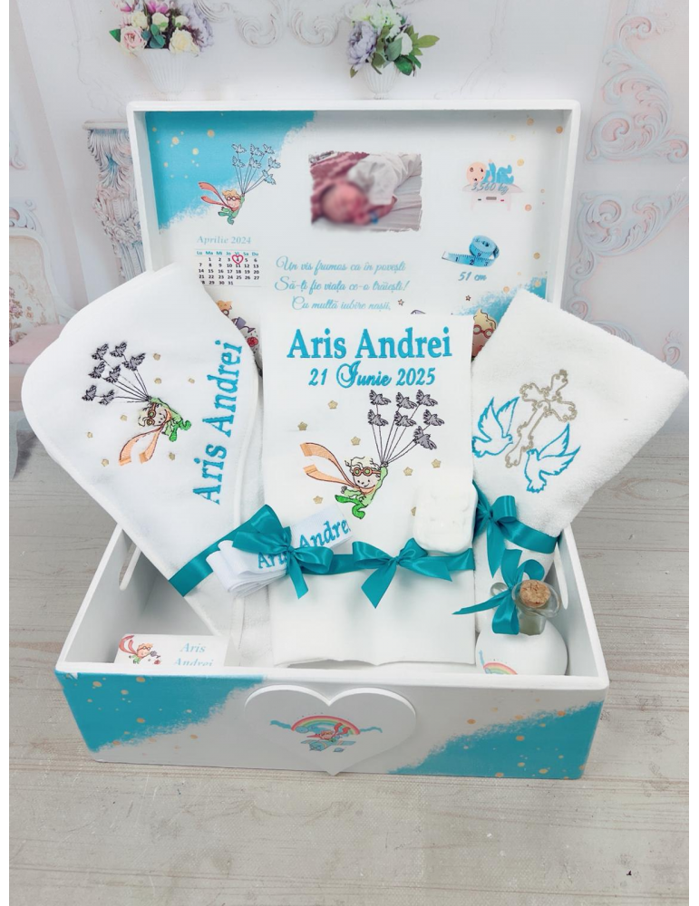 Descoperă seturile de botez personalizate pentru baieti, create pentru a transforma ceremonia de botez într-un moment cu adevărat special. Fiecare element al setului este realizat cu atenție la detalii și personalizat pentru a reflecta tematica dorită, oferindu-ți posibilitatea să păstrezi amintiri prețioase pentru o viață întreagă.