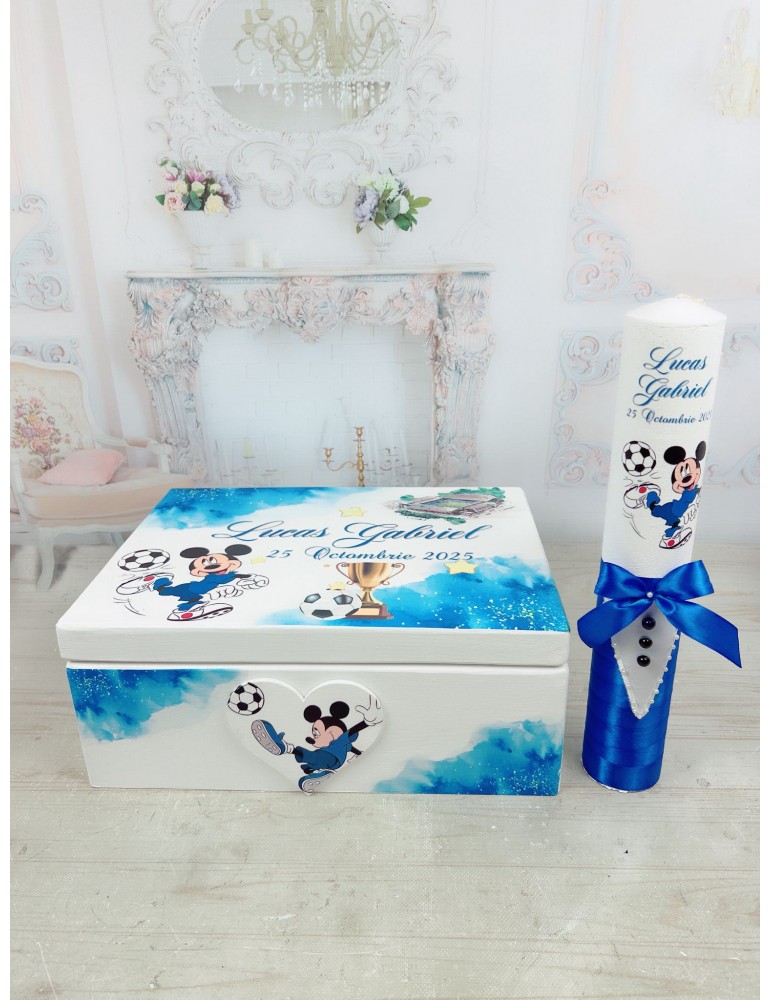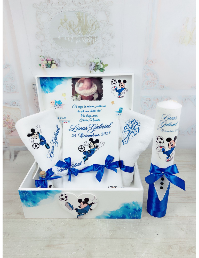 Set botez personalizat cu tematica Mickey nuante de ablbastru