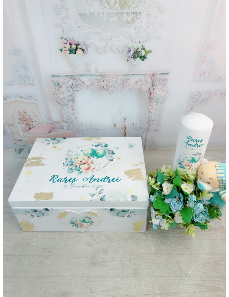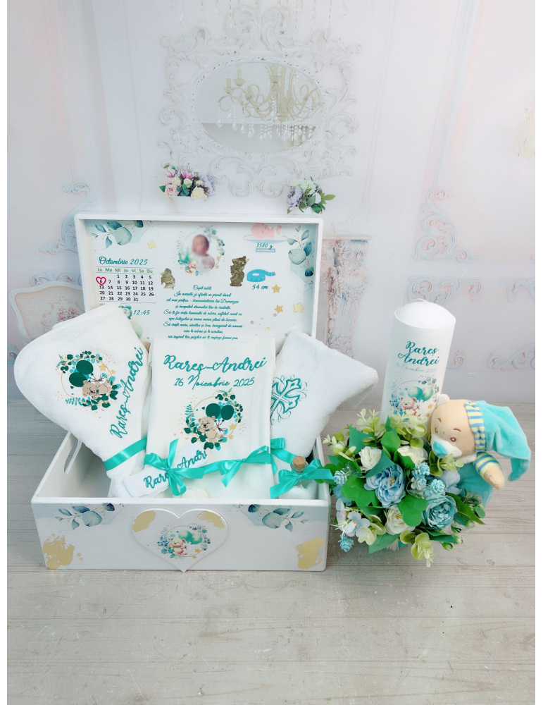 Descoperă seturile de botez personalizate pentru baieti, create pentru a transforma ceremonia de botez într-un moment cu adevărat special. Fiecare element al setului este realizat cu atenție la detalii și personalizat pentru a reflecta tematica dorită, oferindu-ți posibilitatea să păstrezi amintiri prețioase pentru o viață întreagă.