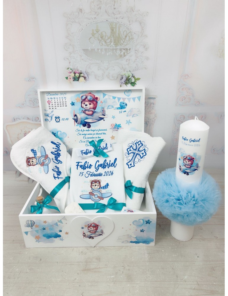 Descoperă seturile de botez personalizate pentru baieti, create pentru a transforma ceremonia de botez într-un moment cu adevărat special. Fiecare element al setului este realizat cu atenție la detalii și personalizat pentru a reflecta tematica dorită, oferindu-ți posibilitatea să păstrezi amintiri prețioase pentru o viață întreagă.