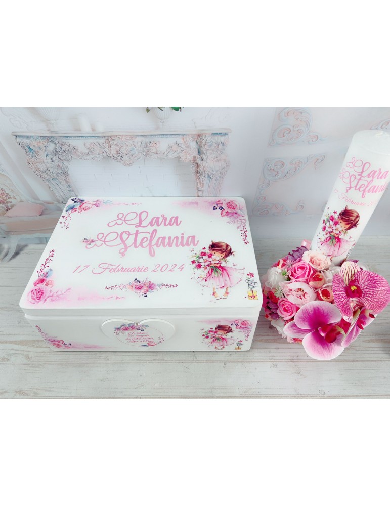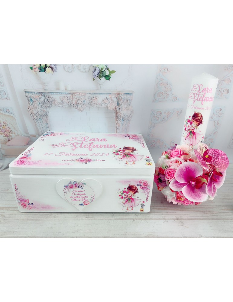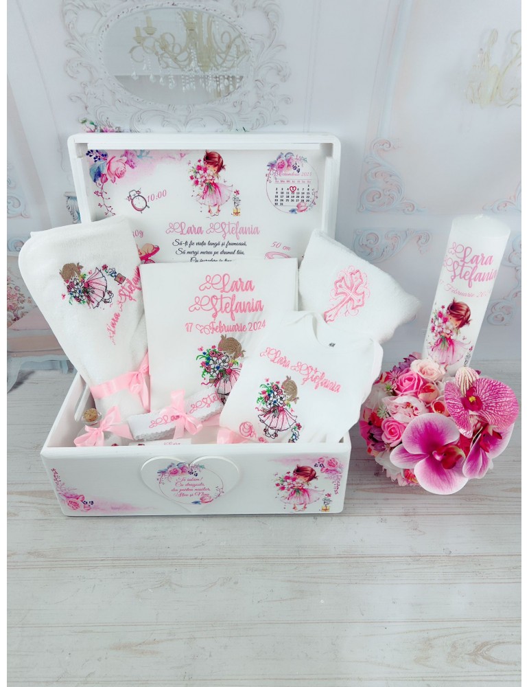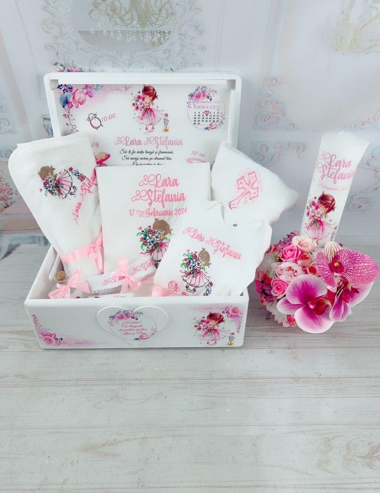 Ce contine setul de botez cu tematica "Fetita cu flori"?