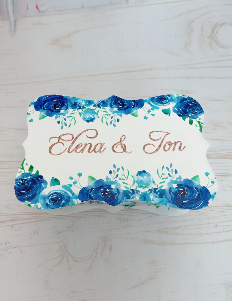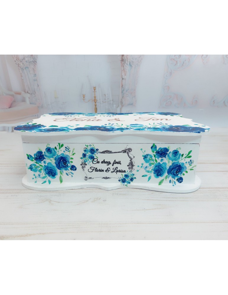 Cutia si placuta sunt vopsite si decorate manual in cadrul atelierului nostru folosind tehnica decoupage si produse NON TOXICE marca MAXI DECOR.