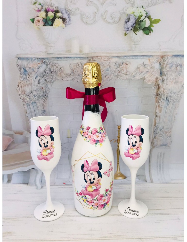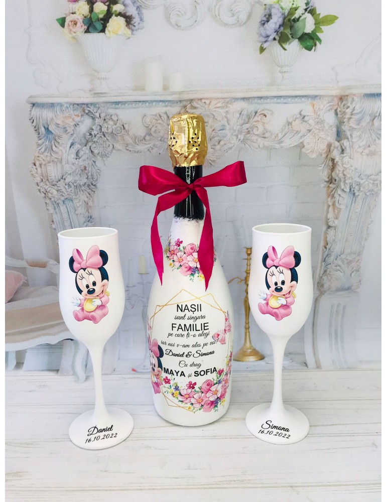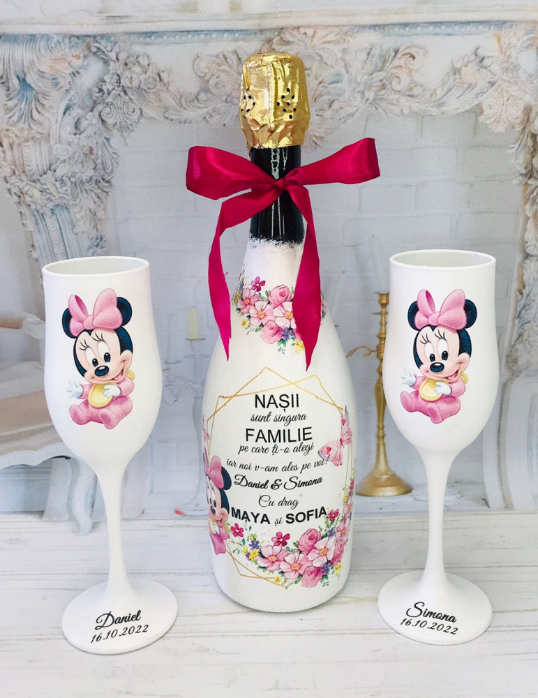 Sticla si pahare personalizate pentru nasi - cadou botez nasi