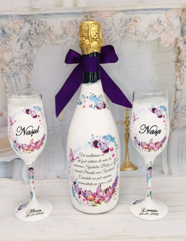 Sticla si pahare personalizate - cadou nasi botez