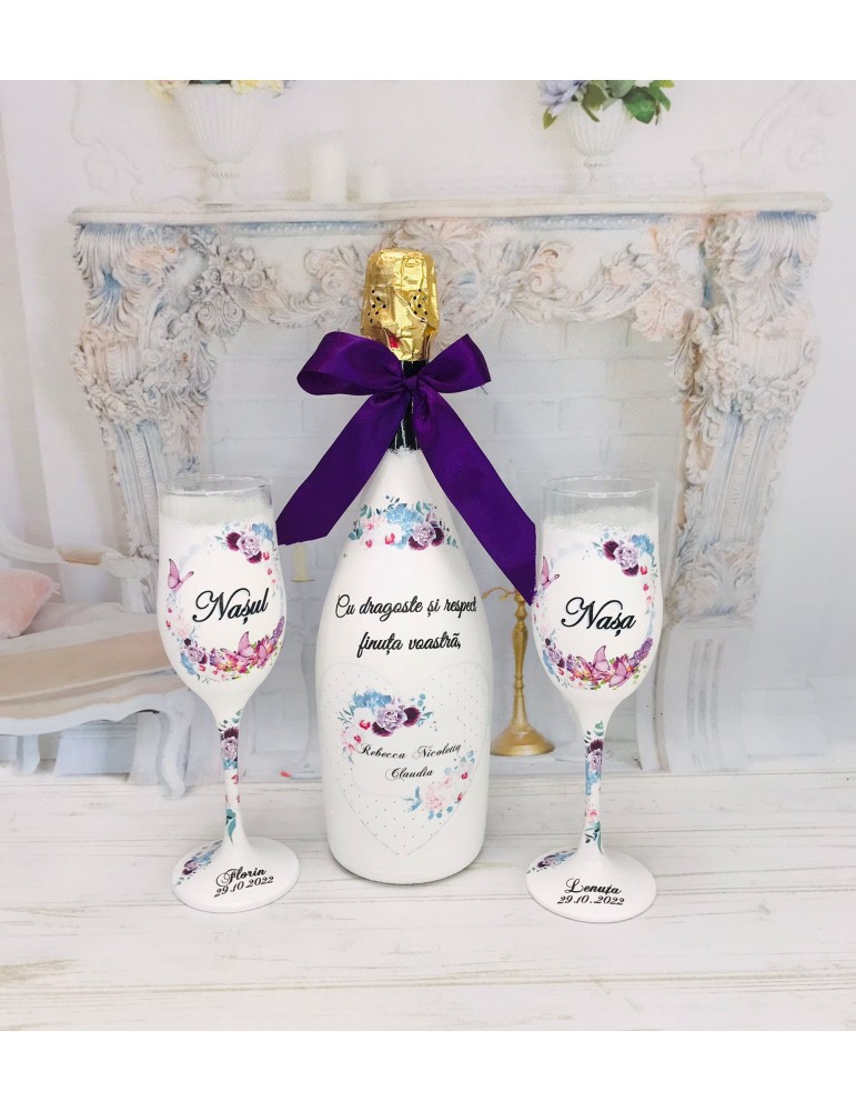 - Personalizare unica: Fiecare set este decorat manual si personalizat conform dorintelor tale, fiind un cadou personalizat pentru nasi ce exprima recunostinta ta fata de ei.