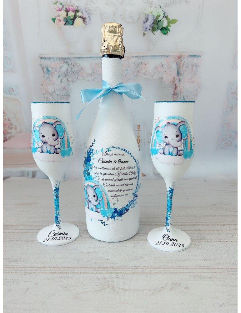 1. Folositi-l pentru ocazii speciale: Setul este perfect pentru momentele festive din ziua botezului, cum ar fi toasturile sau sesiunea foto alaturi de nasii copilului. Este un mod elegant de a celebra si de a crea amintiri de neuitat.