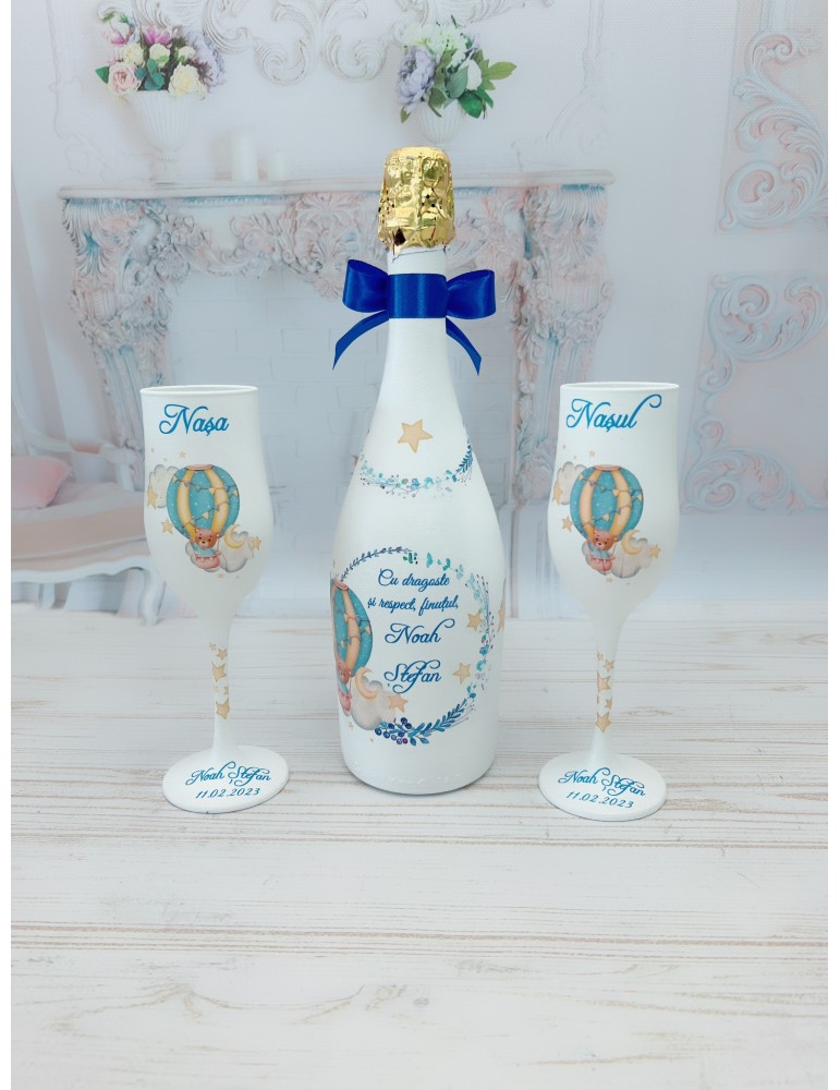 1. Folositi-l pentru ocazii speciale: Setul este perfect pentru momentele festive din ziua botezului, cum ar fi toasturile sau sesiunea foto alaturi de nasii copilului. Este un mod elegant de a celebra si de a crea amintiri de neuitat.