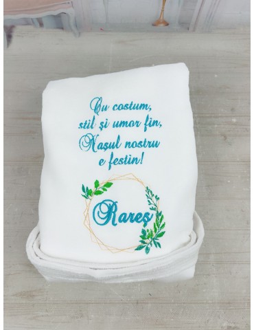 Un halat personalizat pentru nașul de cununie, confecționat din bumbac moale și confortabil, personalizat cu grafică și textul dorit. Un cadou simbolic și rafinat, care îi arată cât de important este în ziua cea mare.