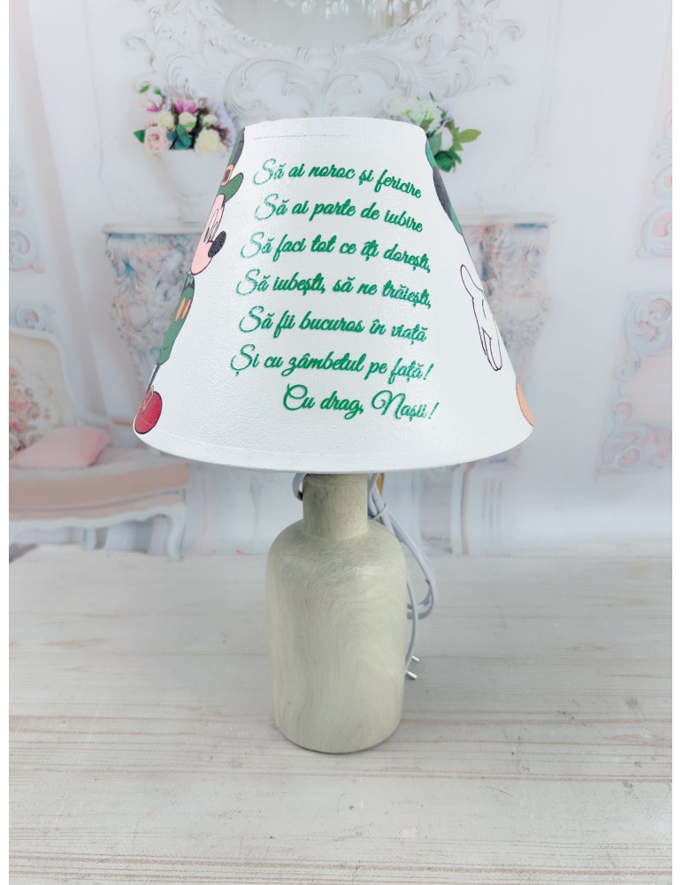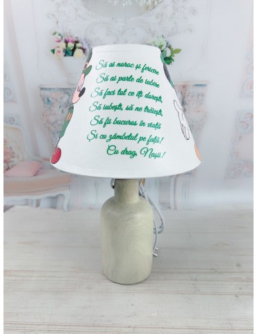 Veioza este vopsita si decorata manual in caddrul atelierului nostru folosind tehnica decoupage si produse NON TOXICE marca MAXI DECOR.