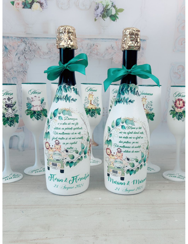Cadou nasi de botez - Sticla personalizata Safari