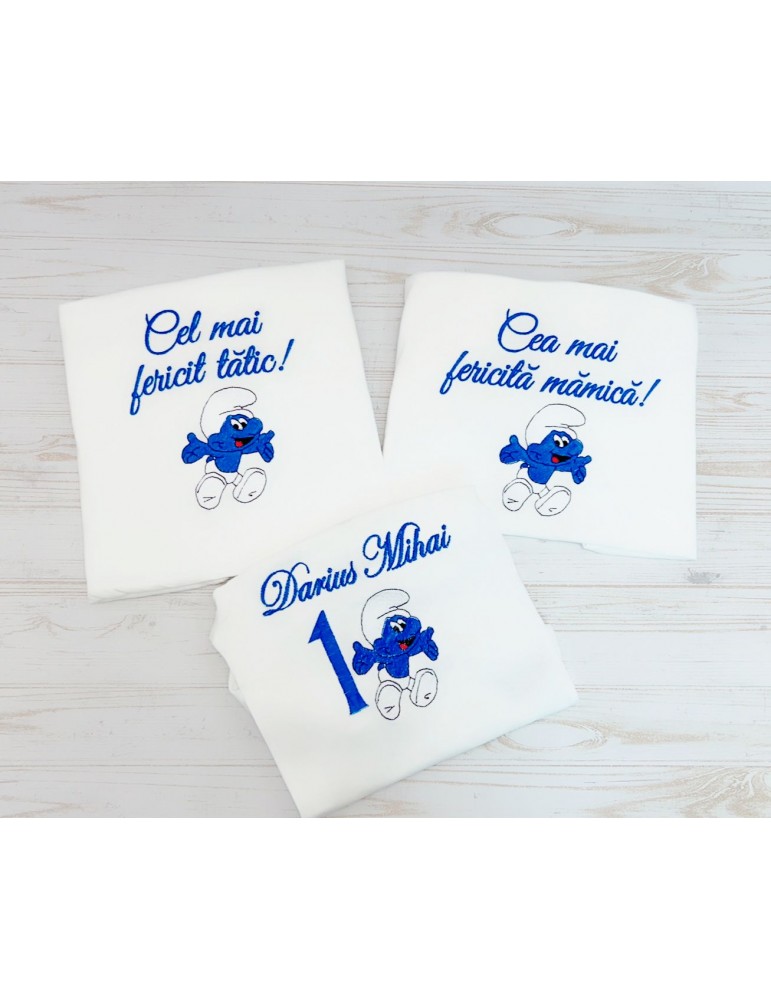Set tricouri brodate pentru mot cu tematica Strumfi