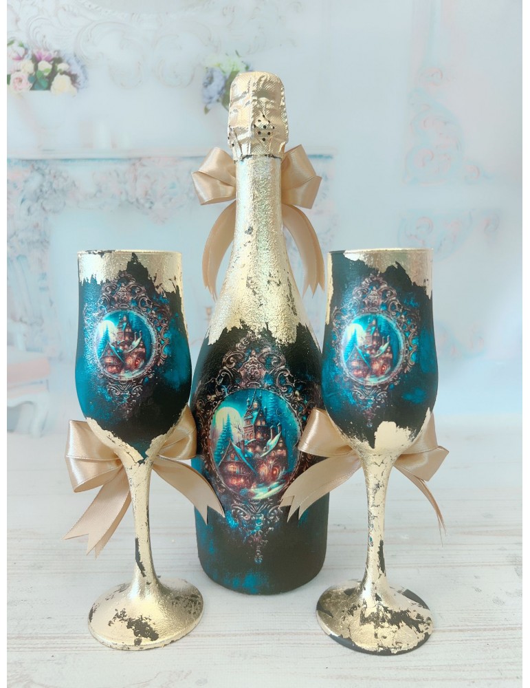 Setul conține o sticlă de șampanie Cricova personalizată și două pahare de șampanie decorate manual, toate protejate cu trei straturi de lac pentru o rezistență îndelungată. Designul cu tematică de iarnă este realizat prin tehnica decoupage, oferind un aspect festiv, plin de eleganță și farmec. În plus, fiecare set este livrat într-un ambalaj cadou premium, gata de oferit celor dragi.