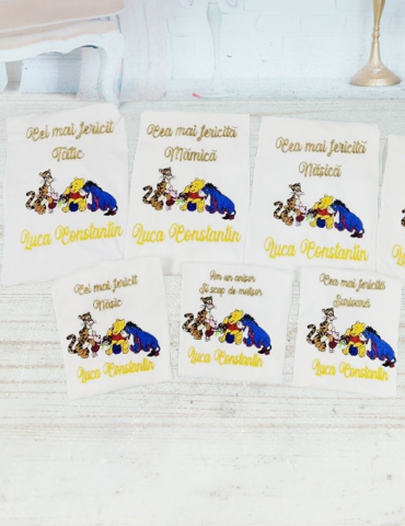 Daca doriti o grafica diferita sau alte modificari in afara de cele mentionate pentru personalizare(nume, data, mesaj) va rugam sa plasati comanda separat folosind adresa de email: albinute.magice@gmail.com