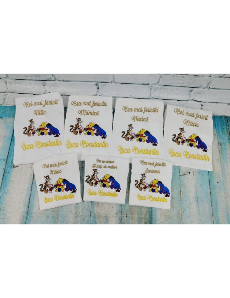 Pretul afisat se refera la un singur tricou si include personalizarea (prenume, mesaj preferat).