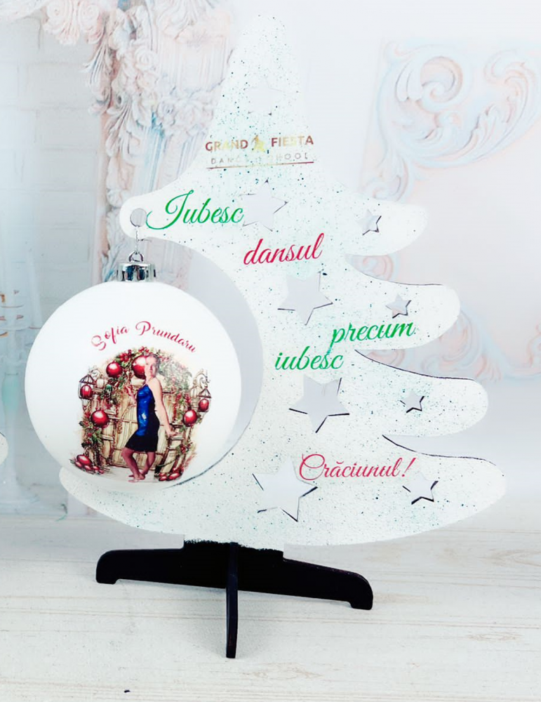 Set cadou de Craciun - bradut si glob personalizat cu poza