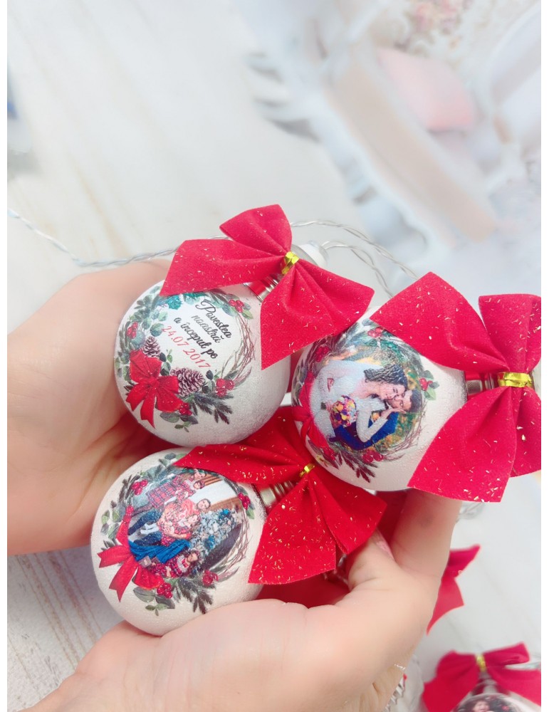 Globurile din sticla se pot personaliza cu orice imagine, diametrul acestora fiind de 6-8 cm.