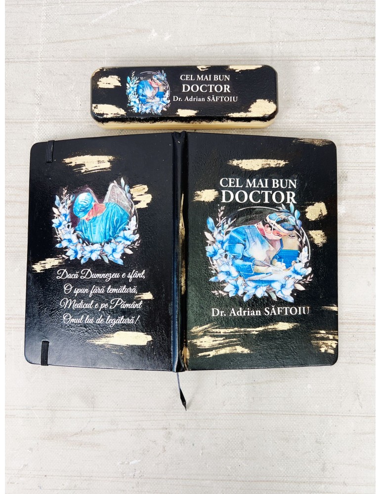 Surprindeti doctorul cu un cadou care emana eleganta si apreciere! Setul cadou pentru doctor este ideal pentru a exprima recunostinta si respectul pentru implicarea sa. Acesta include o agenda personalizata, perfecta pentru organizarea gandurilor si programului, un pix elegant care completeaza armonios setul, si un toc personalizat, pentru a proteja acest instrument de scris esential. Acest cadou rafinat devine simbolul unei rasplatiri deosebite si al unui gest sincer de multumire, gandit special pentru profesionisti dedicati. Alege un dar memorabil, potrivit pentru o persoana care pune pasiune in slujba sanatatii si grijii fata de ceilalti.