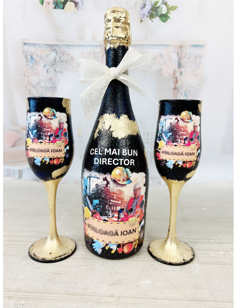 Cadou Craciun - sticla si pahare personalizate - cadou director inginer