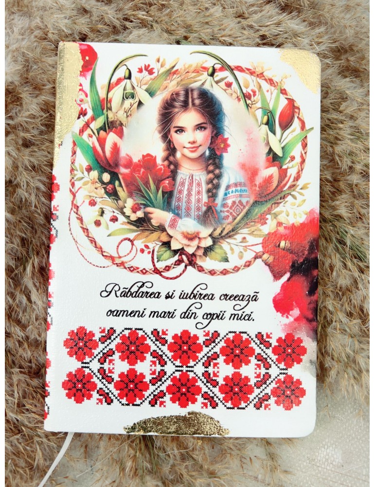 Această agenda pentru educatoare, decorată cu motive traditionala, este realizată manual folosind tehnica decoupage și produse profesionale non-toxice, garantând un design vibrant și sigur. Perfectă pentru a celebra Ziua Femeii sau o zi de naștere, acest cadou este atât util, cât și elegant, aducând un plus de frumusețe și funcționalitate biroului educatoarei. Un mod minunat de a exprima aprecierea față de cei care educă și inspiră.