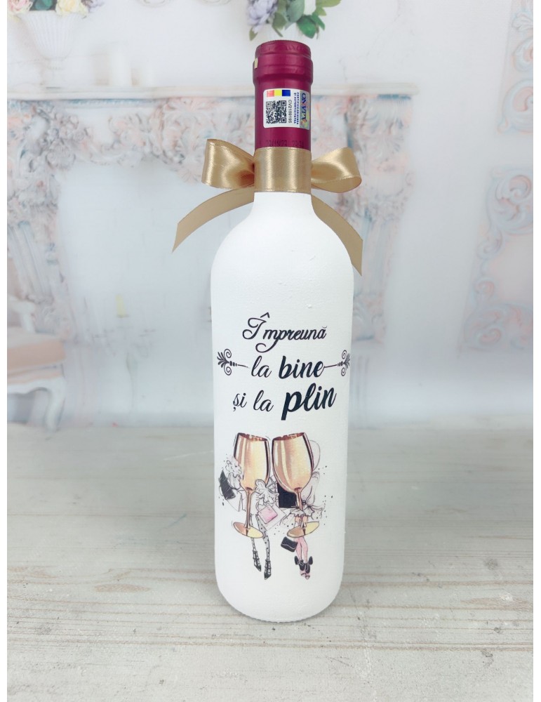 Oferă prietenei tale un cadou de suflet: o sticlă de vin personalizată manual, decorată prin tehnica decoupage cu mesaje speciale și numele ei. Acest dar original și atent lucrat este o amintire prețioasă, care va rămâne vie mult timp după ocazii speciale.