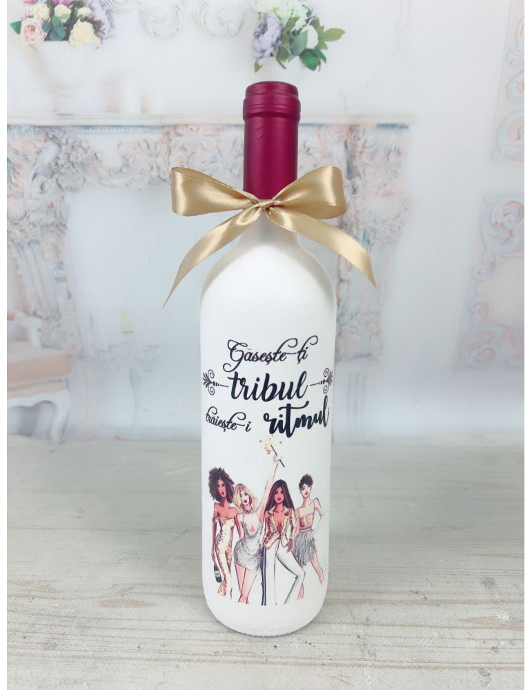 Surprinde-ți prietena din gașcă cu un cadou original și plin de suflet: o sticlă de vin decorativă personalizată manual prin tehnica decoupage. Fiecare sticlă este lucrată cu grijă și decorată cu mesaje speciale și numele ei, pentru a transforma orice ocazie într-un moment memorabil.
